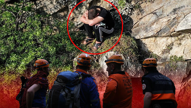 Polisten kaçmak için tırmandığı kayalıkta mahsur kaldı