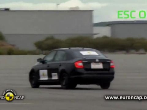 Sürüş testinde Skoda Rapid'in; direksiyon simidi açı sensörü, yalpa oranı sensörü, yanal hızlanma sensörü ve tekerlek hızı sensörü gibi çeşitli donanımları test ediliyor.