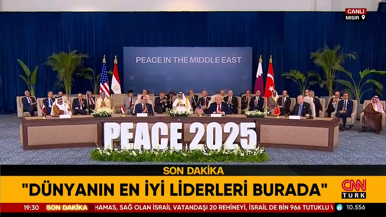 Cumhurbaşkanı Recep Tayyip Erdoğan ve ABD Başkanı Donald Trump'ın da aralarında bulunduğu çok sayıda liderin katıldığı Mısır'ın Şarm el-Şeyh kentindeki tarihi zirve başladı. Trump, zirvede yaptığı açıklamada, Cumhurbaşkanı Erdoğan'a teşekkür ederek şu ifadeleri kullandı: Bunun bir parçası olmak büyük bir onur. Bir anlaşma imzalayacağız. 300 yıllık çatışmayı sonlandırdık.