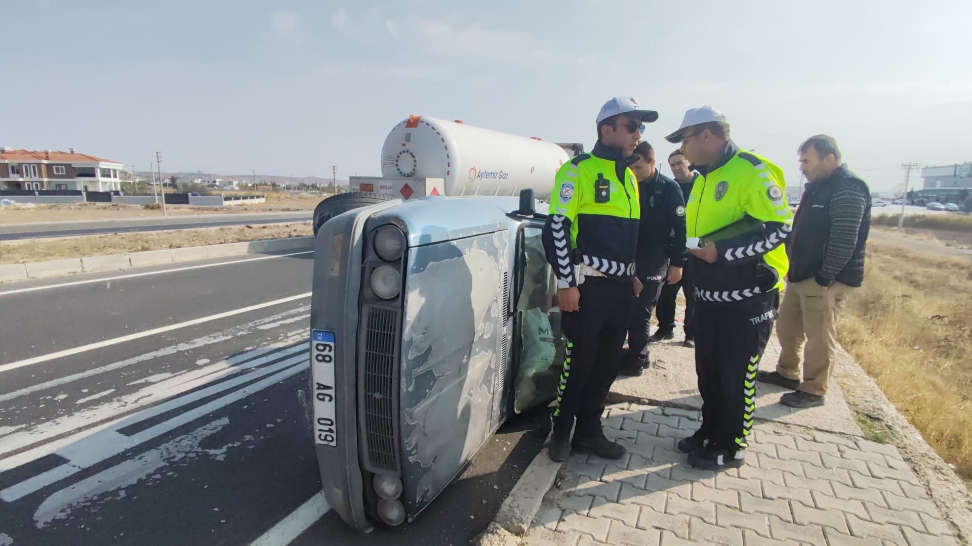 Kaza, saat 13.30 sıralarında Aksaray Ankara kara yolu 6’ncı kilometresinde meydana geldi. Salim Özer (72), yöntemindeki 68 AG 019 plakalı otomobili ile solama yaparken direksiyon hakimiyetini kaybedip, Erkan Akıllı (53) idaresindeki 06 VG 283 plakalı TIR’a yandan çarptı. Savrulan araç karşı şeride geçip yan yattı. Kazada sürücü Salim Özer ile Üçler K. (76), Dede K .(78) yaralandı. Çevredekilerin ihbarı üzerine kaza yerine polis ve sağlık ekipleri sevk edildi. Yaralı 3 kişi Aksaray Eğitim ve Araştırma Hastanesi’ne kaldırıldı. (DHA)