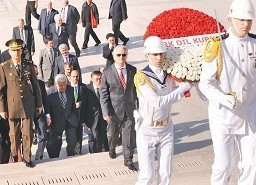 Atatürk’ün mozolesine çelenk koymasının ardından saygı duruşunda bulunuldu.