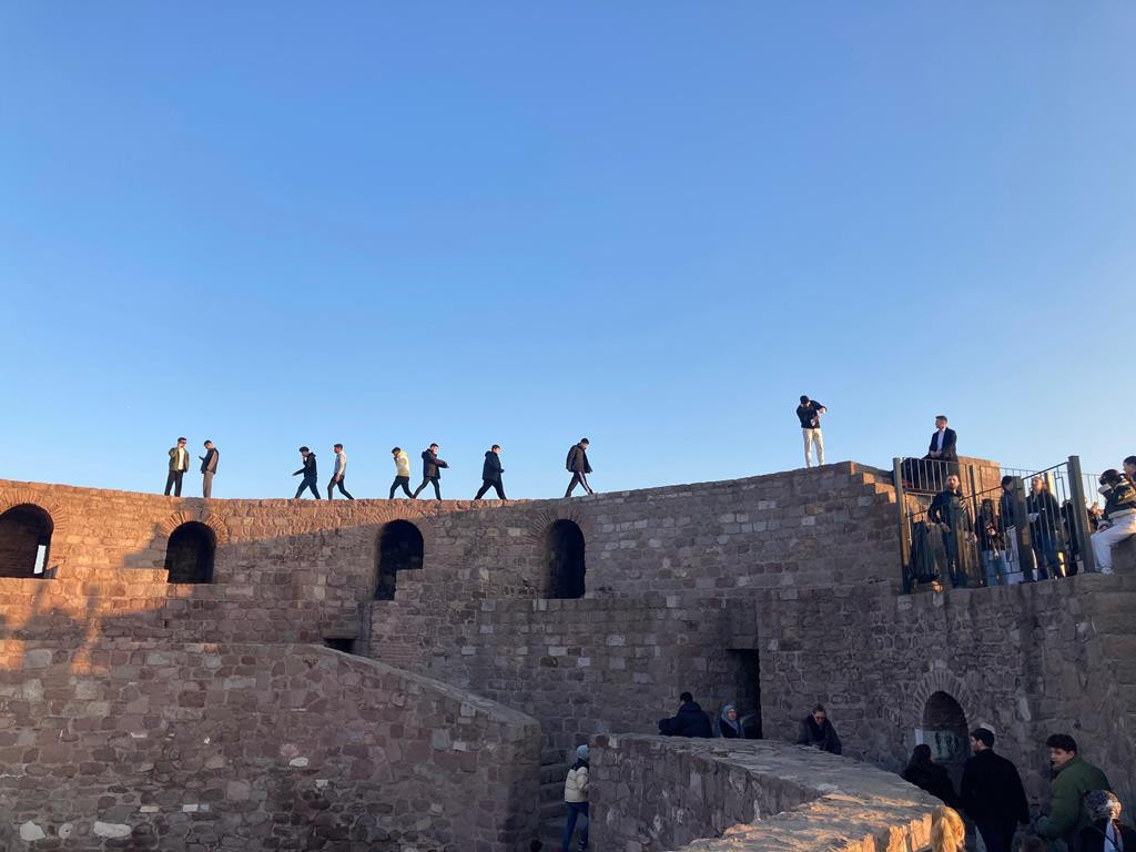 Gençlerden bazılarının aralarındaki tehlikeli şakalaşmaları ise ‘pes’ dedirtti. Kalede o esnada güvenlik görevlisinin bulunmadığı da görüldü. Ziyaretçiler surların iki tarafından da yasak olan kısma geçiş yapıyor. Kalenin sağ tarafından demirlerin üzerine tırmanarak çıkan ziyaretçiler sol tarafta da bazen kendileri tırmanıp çıkarken bazen de aşağıdaki kişiye el uzatıp çekerek yardım ediyor.