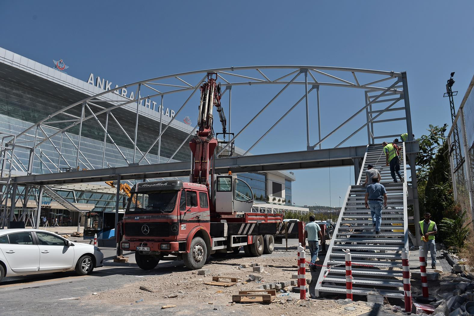 Hürriyet Ankara’nın geçtiğimiz yıl ‘Yüksek hızlı yaya koşusu’, ‘Güler misin ağlar mısın’ başlıklı haberlerinin ardından YHT Garı önündeki yaya üst geçidi ihtiyacı gündeme alınmıştı. Ankara Tren Garı İşletmeciliği (ATG), geçtiğimiz günlerde YHT Garı önüne yaya üst geçidi yapımına başladı. Üst geçidin kısa bir süre sonra tamamlanarak kullanıma açılacağı öğrenildi.