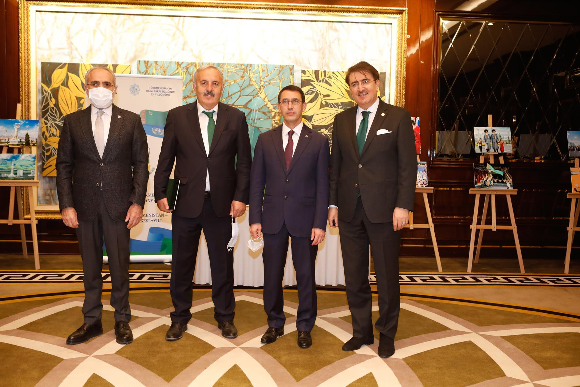 Büyükelçi İşankuli Amanliyev’in ev sahipliğinde gerçekleşen törene siyaset ve iş dünyasından isimler katıldı. ‘Türkmenistan Tarafsızlığın Ülkesi’ yılı olarak belirlenen ve birçok ülkede çeşitli etkinliklerle kutlanan Türkmenistan’ın daimi tarafsızlığının 25’inci yılı vesilesiyle Ankara Latanya Otel’de bir kutlama düzenlendi. Etkinliğe eski Kültür ve Turizm Bakanı Yalçın Topçu, milletvekilleri Bedri Yaşar ve İbrahim Aydemir’in yanı sıra büyükelçiler ve iş dünyasından isimler katıldı. Etkinlik Türkiye ve Türkmenistan milli marşlarının okunmasıyla başladı. Türkmenistan’ın Ankara Büyükelçisi İşankuli Amanliyev yaptığı açılış konuşmasında “Türkiye’deki kardeşlerimiz, 1995 yılında BM Genel Kurulu Türkmenistan’a daimi tarafsız uluslararası hukuk statüsü tanıdı” dedi. Tarafsızlık günü kutlamaları kapsamında birçok etkinliğin yapıldığına dikkat çeken büyükelçi, gerek kültür sanat faaliyetleriyle gerek etkinliklerle bağımsızlık günü kutlamalarına öncülük eden isimlere plaketlerini taktim etti. Etkinlik akşam yemeği programıyla devam etti.