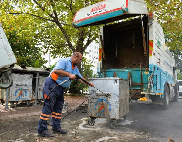 Meteoroloji 4'üncü Bölge Müdürlüğü'nün Antalya'da çarşamba gününe kadar hava sıcaklığının mevsim normallerinin üzerinde seyredeceği uyarısıyla birlikte Muratpaşa Belediyesi Temizlik İşleri Müdürlüğü teyakkuza geçti. Yaz mevsimiyle birlikte çöp konteynerlerinin neden olabileceği uçkun ve haşere tipi böcek, bakteri ve kötü kokuya karşı rutin dezenfekte işlemi yapan ekipler, hava sıcaklığının daha da artacağı uyarısıyla dezenfekte işlemini sıklaştırdı. Çöp konteynerlerinde atık kalıntılarının oluşturduğu kötü koku ve kirliliği önlemek amacıyla konteynerler bulundukları yerde özel temizlik aracı içinde yıkanıyor. Konteynerler, yıkama işlemenin ardından tazyikli suyla ikinci bir temizlikten daha geçiriliyor.