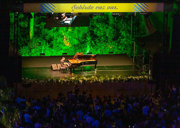 DÜNYACA ünlü piyanist ve besteci Fazıl Say, caz müziğin önemli isimlerini Antalya’da buluşturan 2’nci Akra Caz Festivali’nde büyüleyici bir konserle sahne aldı. Seyircilerin yoğun ilgisiyle gerçekleşen konserin ilk yarısında Say, son eserleri arasında yer alan Truva Sonatı adlı eserini seslendirdi. Fazıl Say, 40 dakikalık 10 bölümlü Truva Sonatı’nı seslendirirken Paris, Hector, Helen, Aşil, Agamemnon, Menelaos gibi Truva’nın meşhur figürleri sahnedeki ekrana yansıtıldı.