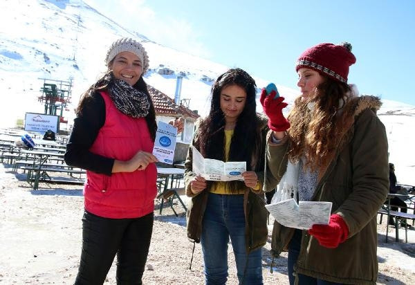 ANTALYA, (DHA) - ANTALYA İl Sağlık Müdürlüğü ekipleri, Saklıkent Kayak Merkezi'nde 'Dünya Sigarayı Bırakma Günü' dolayısıyla tatilcilere broşür dağıtarak sigaranın zararları hakkında bilgi verdi.