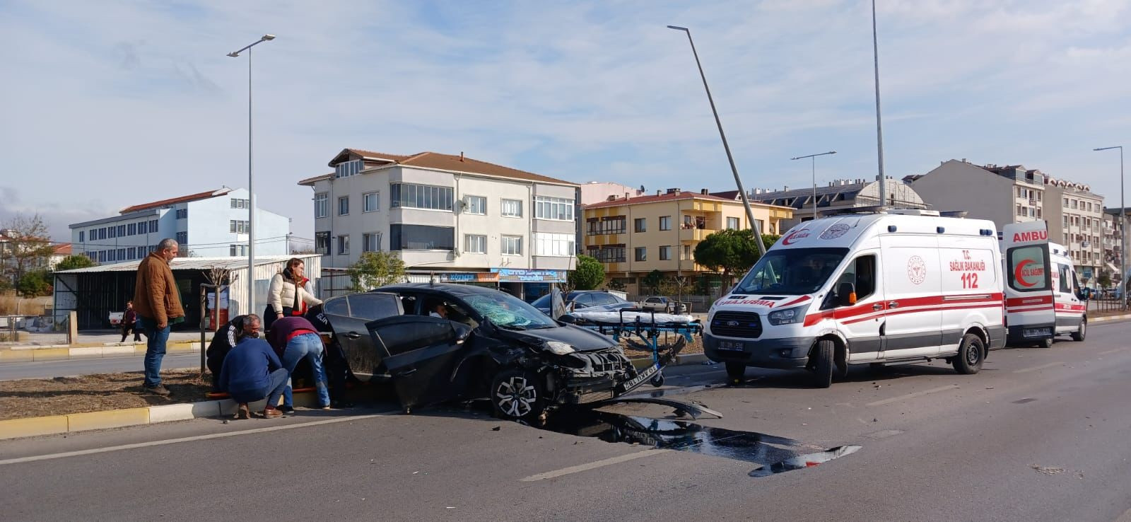 Kaza saat 13.00 sıralarında Atatürk Caddesi’nde meydana geldi. F.D. yönetimindeki 10 AKU 182 plakalı otomobil, Etibor Kavşağı yönünden Korozman Kavşağı istikametine doğru seyir halindeyken, sürücüsünün direksiyon hakimiyetini kaybetmesiyle kontrolden çıktı. Refüjdeki aydınlatma direklerine çarpıp, karşı yöne geçtikten sonra duran otomobildeki, E.D., Ö.K. ve E.T. yaralandı. Yaralılar, ihbarla olay yerine sevk edilen sağlık ekiplerinin müdahalesinin ardından, ambulanslarla kaldırıldıkları Bandırma Eğitim ve Araştırma Hastanesi’nde tedaviye alındı.