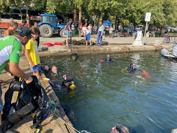 Erdek Belediyesi, Bandırma Rotary Kulübü ve Erdek Dalış Kulübü işbirliğiyle yapılan etkinlikte, Erdek limanında deniz altı temizliği gerçekleştirildi. Yaklaşık 1 saat boyunca suyun altında temizlik yapan dalgıçlar, araç lastiği, cam şişeler, sandalye, yangın tüpü, tabak, bıçak gibi atıkları karaya çıkardı.