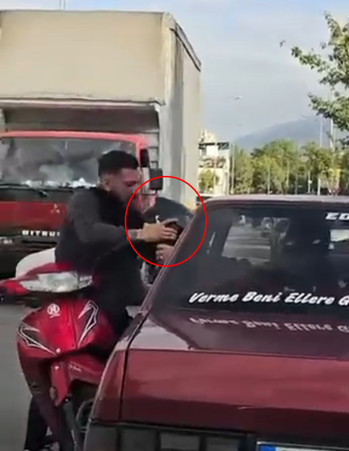 Olay, sabah saatlerinde Yıldırım ilçesinde meydana geldi. Seyir halindeki otomobil ve motosikletin sürücüleri arasında ‘yol verme’ kavgası çıktı. Motosiklet sürücüsü, otomobil sürücüsüne yumruk atarken, otomobil sürücüsü ise motosiklet sürücüsünün kaskını aldı. O anlar başka bir araçtan cep telefonu kamerasıyla görüntülenirken, taraflar arasındaki kavga polisin gelmesiyle son buldu. (DHA)