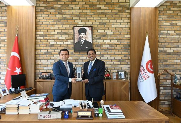 Hindistan'ın Ankara Büyükelçisi Sanjay Kumar Panda, Çanakkale Valisi İlhami Aktaş ve Çanakkale Savaşları Gelibolu Tarihi Alan Başkanı İsmail Kaşdemir'e nezaket ziyaretinde bulundu. Tarihi Gelibolu Yarımadası'nı gezen Hindistan'ın Ankara Büyükelçisi Sanjay Kumar Panda'ya, Çanakkale Savaşları Gelibolu Tarihi Alan Başkanı İsmail Kaşdemir eşlik etti. Şehitler Abidesi'ndeki Atatürk Anıtı'na çelenk bırakarak, saygı duruşunda bulunan Büyükelçi Panda, şehitliğe karanfil bıraktı.