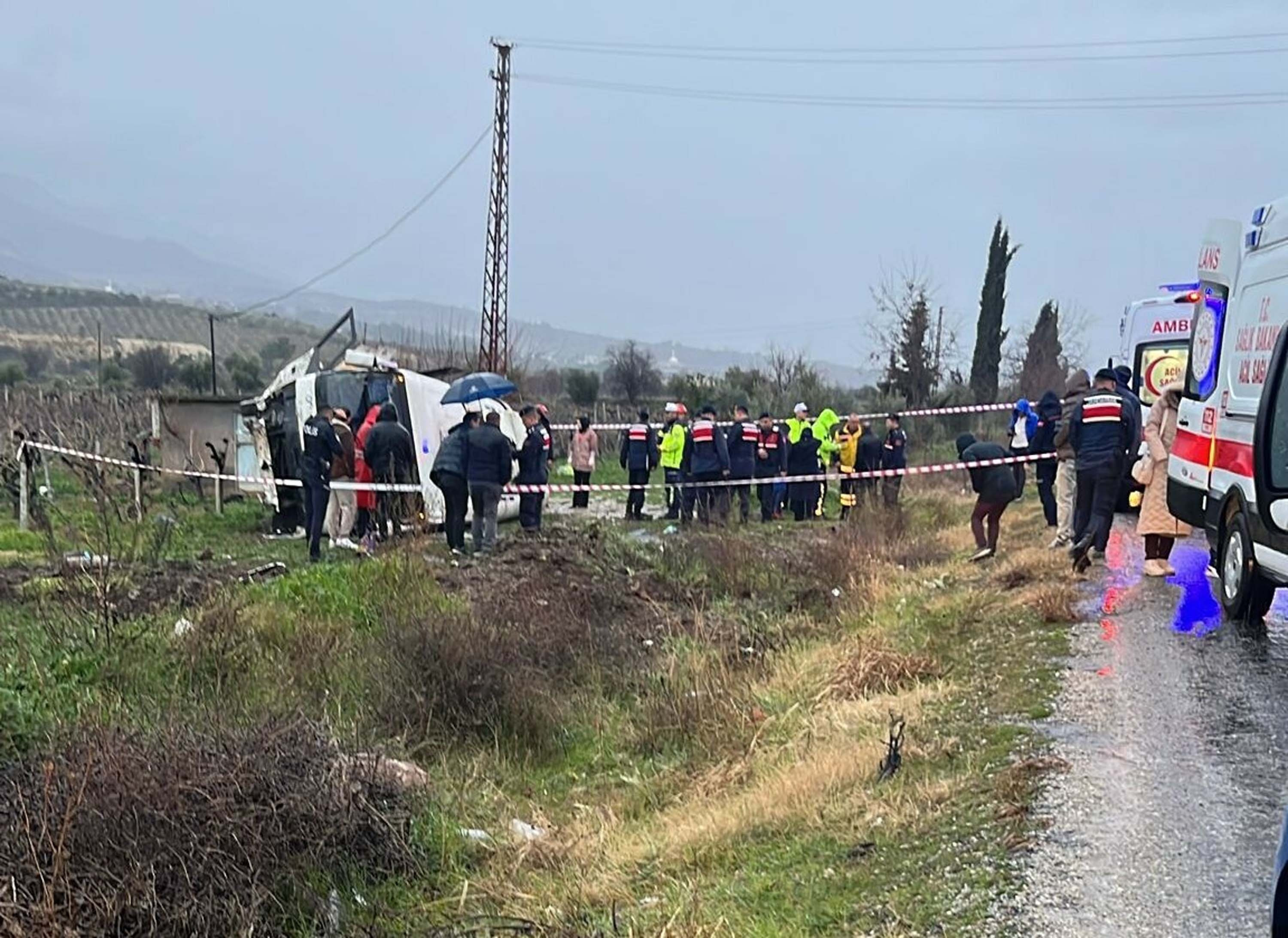 Özcan DURUSOY/BULDAN (Denizli), (DHA)-DENİZLİ'nin Buldan ilçesinde memurları taşıyan servis midibüsünün devrildiği kazada ameliyat hemşiresi Kadriye Koçan (23) hayatını kaybetti, 25 kişi yaralandı.