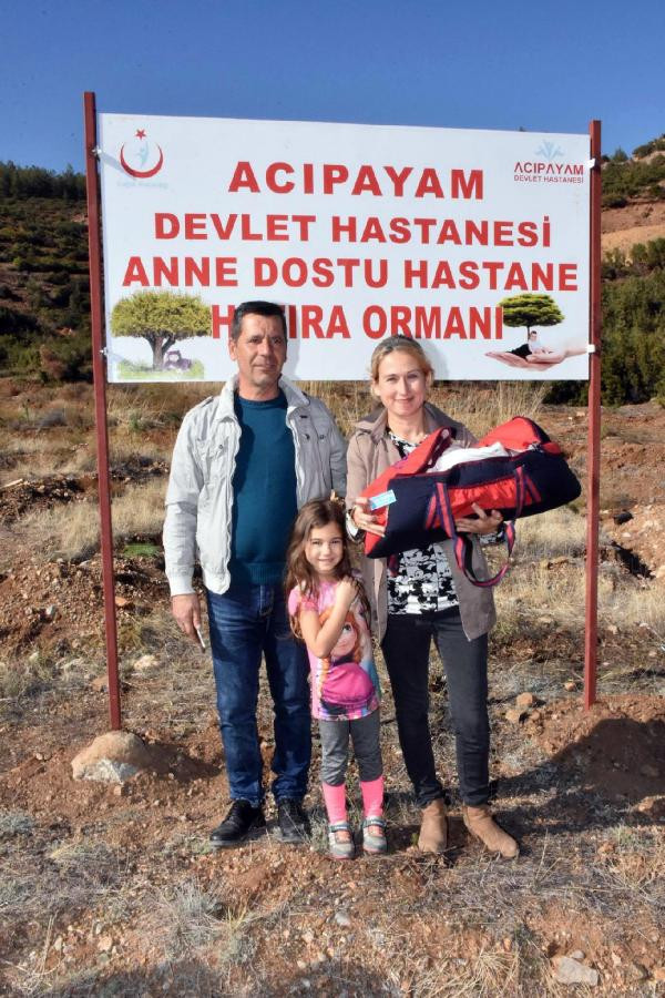 Türkiye'nin 23., Denizli'nin ilk Anne Dostu Hastanesi seçilen Acıpayam Devlet Hastanesi, başarısını Acıpayam Orman İşletme Müdürlüğü işbirliğiyle Anne Dostu Hastane Hatıra Ormanı oluşturarak kutladı. Ahırlı Mevkii'nde oluşturulan hatıra ormanının fidan dikim törenine; Acıpayam Kaymakamı Ali Şanlıer, Acıpayam Belediye Başkanı AK Partili Hulusi Şevkan, Denizli Kamu Hastaneleri Birliği Genel Sekreteri Dr. Berna Öztürk, Denizli Orman Bölge Müdür Yardımcısı Erol Pehlivan, Acıpayam Devlet Hastanesi Başhekimi Dr. Hulusi Deniz Oğuz, Acıpayam Orman İşletme Müdürü Halil Özdemir, 2017 yılında hastanede doğan çocukların aileleri katıldı. Fidan dikimine katılan aileler, bu yıl hastanede doğan 52 bebek adına çam fidanı dikildi.