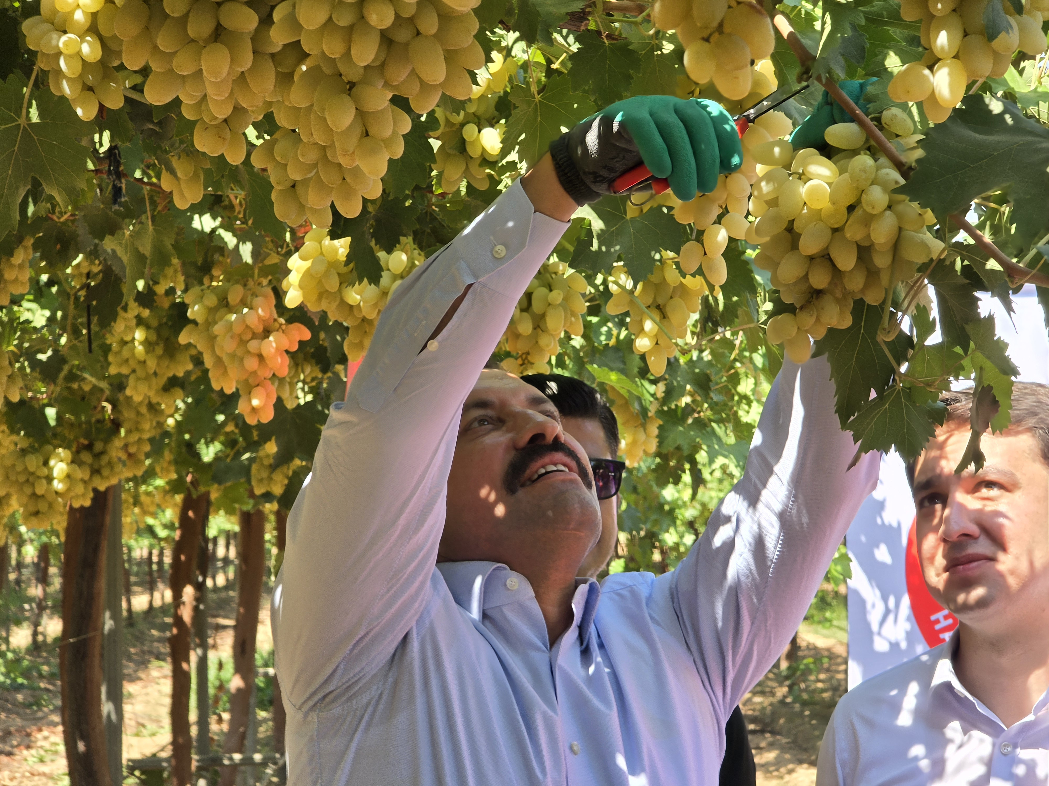 Hasat sonrası açıklamada bulunan Vali Masatlı, "Asrın inşa ve imar çalışmaları, Cumhurbaşkanımızın liderliğinde hayatın her alanında devam ediyor. Bizler bir yandan şehrimizi yeniden ayağa kaldırırken, diğer yandan da tarımsal üretimin artırılması noktasında önemli çalışmalar yürütüyoruz. Şu ana kadar hayvansal ve bitkisel üretimden kırsal kalkınma projelerine, sertifikalı tohumdan gübre dağıtımına kadar devletimiz çiftçilerimizi her açıdan desteklemeye, onlara çözüm olmaya ve teşvik etmeye devam etti. Hatay, bereketli ve verimli topraklara sahip olmasıyla Türkiye’nin tarımsal potansiyeli en yüksek illerinden biridir. İl genelinde pamuk, zeytin ve üzüm başta olmak üzere çok çeşitli ürünler yetişmektedir. Bugün hasadını gerçekleştirdiğimiz üzüm de Hatay’ın önemli tarımsal değerlerinden biridir" dedi.