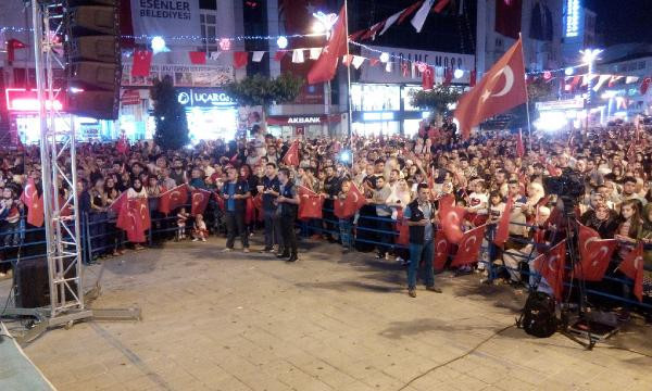 İSTANBUL(DHA)- ESENLER Belediyesi'nin, 15 Temmuz hain darbe girişiminin birinci yıl dönümü nedeniyle Esenler Dörtyol Meydanı’nda düzenlediği 15 Temmuz demokrasi nöbetine onlarca vatandaşlar katıldı.