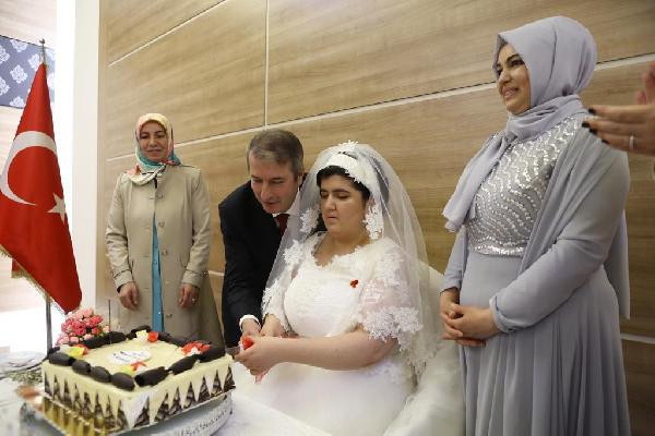 İSTANBUL, (DHA)- İSTANBUL Sarıyer’de yaşayan ve en büyük hayali gelinlik giymek olan down sendromlu Sümeyye Üçtaş (22) İBB Sarıyer Kültür Merkezi’nde kendisi için düzenlenen temsili düğünde gelinlik giyip, doyasıya eğlendi. Kızının büyük mutluluk yaşadığını söyleyen anne Aysun Uçtaş, “Kızım düğünlere gittikçe, gelinlik gördükçe, ben de giyineceğim diyordu. Bu gece sabaha kadar uyumadı, gelinliği bekledi. Çok mutluyuz” dedi.