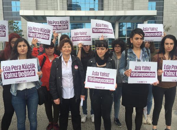İstanbul Kadın Meclisi, duruşma öncesi adliye önünde basın açıklaması yaptı. Grup adına konuşan Dilber Sünnetçioğlu, "Biz kadınlar olarak öldürülmek istemiyoruz, artık yaşamak istiyoruz. Hayatımız hakkında karar verebilmek istiyoruz. Bunun için birlik olduk, hep beraber mücadele edeceğiz. Sokakları, meydanları, adliyeleri terk etmeyeceğiz. Bizi kimse evlere kapatamayacak. Hakkımızı arayacağız, davalarda kadın kardeşlerimizin yanında olacağız. Bugün Eda Pera Küçük arkadaşımızın davası var. Eda'nın yanındayız. Dava süresince adliye koridorunda olacağız" dedi.