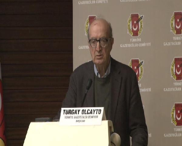Türkiye Gazeteciler Cemiyeti Başkanı Turgay Olcayto tören öncesi bir konuşma yaptı. Cumhuriyet Gazetesine destek vermeye devam edeceklerini vurgulayan Olcayto, "Cumhuriyet Gazetesi'ne vakıf dolayısı ile başlayan ve halen 18 arkadaşımızın gözaltında olduğu, 5 gün avukatlarıyla görüşemedikleri bir durum var. Biz Türkiye Gazeteciler Cemiyeti, Türkiye Gazeteciler Sendikası, DİSK'e bağlı Basın-İş ve Çağdaş Gazeteciler olarak hergün Cumhuriyet Gazetesi'ne gidiyoruz. Oradaki arkadaşlarımıza destek vermeye çalışıyoruz. Oradaki arkadaşlarımız gece-gündüz demeden inanılmaz bir şekilde çalışıyorlar. Eksikliği hissettirmemeye çalışıyorlar" dedi.