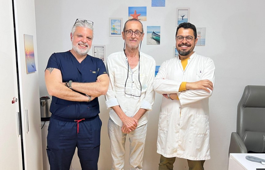 İzmir’de yaşayan 58 yaşındaki Erdoğan Demiröz’ün, şeker hastalığı ve bacak damar tıkanıklıkları nedeniyle son bir yıldır önce sağ ayak serçe parmağında başlayan yara, birçok tedaviye rağmen hızla ilerleyerek ayağını tehdit eder hale geldi. Daha önce önlem amaçlı sağ ayağından üç parmağı kesilmesine rağmen hastalık hızla ilerledi. Şeker hastalığı ve damar tıkanıklarının etkisinin artmasıyla kronik yaranın şiddeti arttı ve sağ bacağı ampute kararı alındı. Tavsiye üzerine Özel Gazi Hastanesi Kalp Damar Cerrahisi Kliniği’ne başvuran Erdoğan Demiröz, burada Op. Dr. Kadir Çeviker ve Op. Dr. Alkan Arpaçay’ın uyguladığı anjiyo, by-pass cerrahisi, kök hücre ve eksozom tedavisiyle yeniden sağlığına kavuştu.