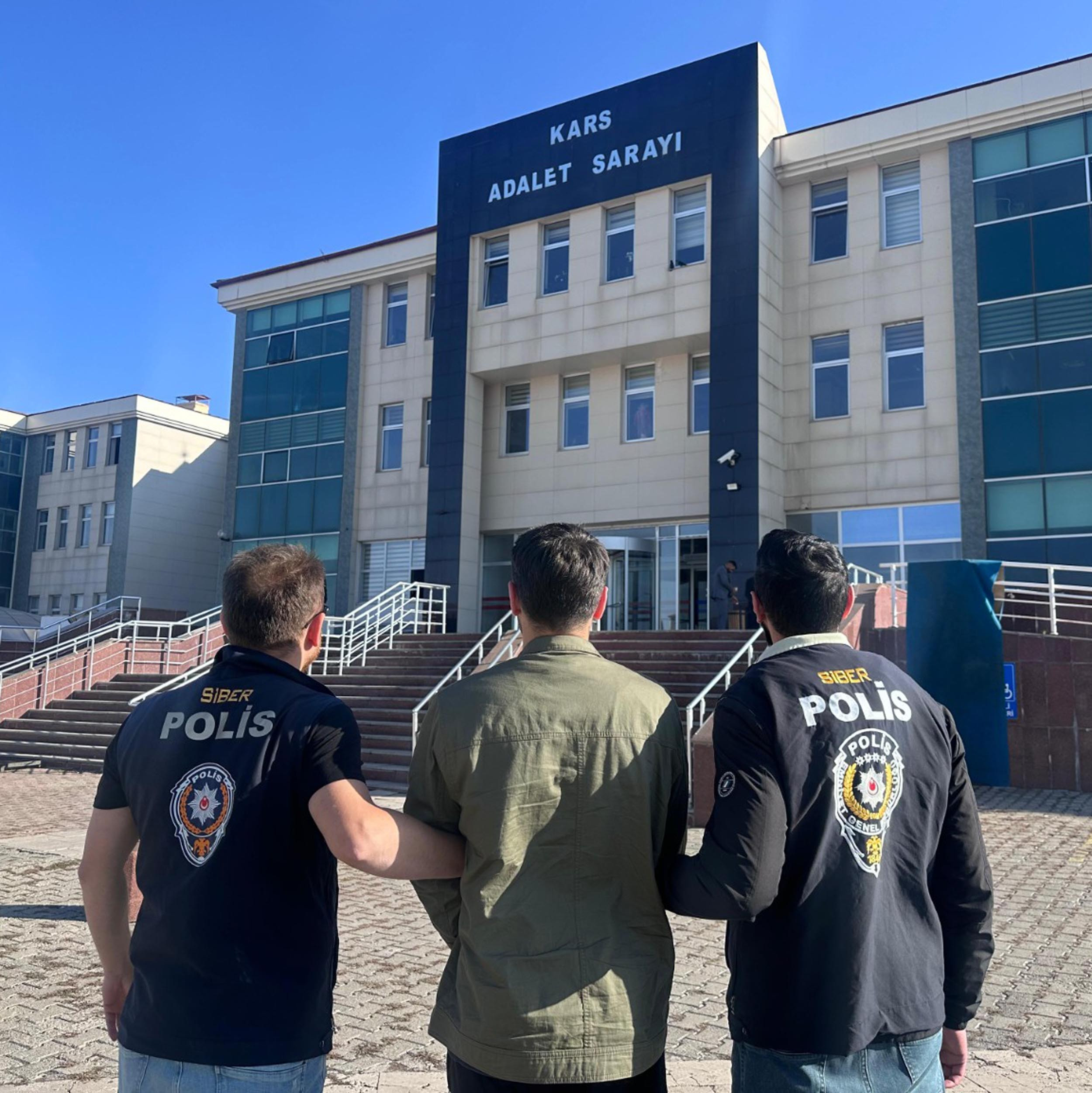 Kars Emniyet Müdürlüğü Siber Suçlarla Mücadele Şube Müdürlüğü ekipleri, hakkında arama kararı bulunan M.İ.’nin kent merkezinde bir adreste saklandığı bilgisine ulaştı. Adrese düzenlenen operasyonda M.İ. yakalanarak gözaltına alındı. M.İ.’nin 'banka ve kredi kurumlarının araç olarak kullanılması suretiyle dolandırıcılık' ile 'kişinin kendisini kamu görevlisi veya banka görevlisi olarak tanıtması suretiyle dolandırıcılık' suçlarından toplam 19 yıl 15 gün kesinleşmiş hapis cezasının bulunduğu belirlendi. Emniyetteki işlemlerinin ardından adliyeye sevk edilen M.İ., çıkarıldığı hakimlikçe tutuklanarak cezaevine gönderildi. (DHA)