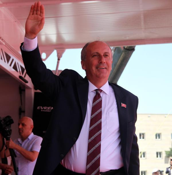 "Dünya 10 sene sonra buralara gelecek bizimki de her mahallede kıraathane açacak. Yani dünya bu noktalara giderken, Türkiye'yi 16 yıl yönetmiş birisi, her mahalleye kıraathane açacak; çaylar, kekler bedava. Gündüz keki bedava yedi de akşam ne olacak? Meydanlara gelip, 'Ustayım' diyordu ya meğer kek ustasıymış. Erdoğan'a sesleniyorum. Madem Türkiye 2018'in ilk çeyreğinde 7,4 büyüdü; Sayın Erdoğan, seninle istediğin bir TV kanalında madem ustasın, ekonomistsin; hiçbir konuyu tartışmayacağım, diplomanı sormayacağım, yolsuzlukları sormayacağım. Sadece ekonomi konuşacağız. Kayseri'den dünyanın oyunu alıyorsun gerçi bu sefer alamayacaksın. Sayın Erdoğan, gel sadece benimle ekonomi tartış. Ben ona 'Sayın Erdoğan' diyorum o 'Bana bak Muharrem' diyor. Ben fakir fukaraya bakıyorum, sana bakamayacağım. Sayın Erdoğan, bu iş tamam. Merak etme, hukuk devleti var. İntikam, rövanş yok. Türkiye'yi ayağa kaldıracağız. Bu büyük değişimi gittiğim her yerde görüyorum."