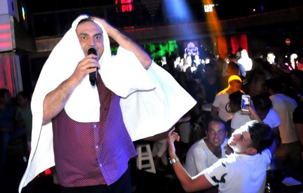 Yerinde duramayan Arto, aşırı terleyince yanında getirdiği banyo havlusuna sarıldı. DJ kabininden çıkıp sahne üzerinde bu şekilde devam eden Arto, ilginç bir görüntü oluşturdu. Gecenin ilerleyen saatlerine kadar süren programda tatilciler şarkılar eşliğinde dans edip eğlendi.
