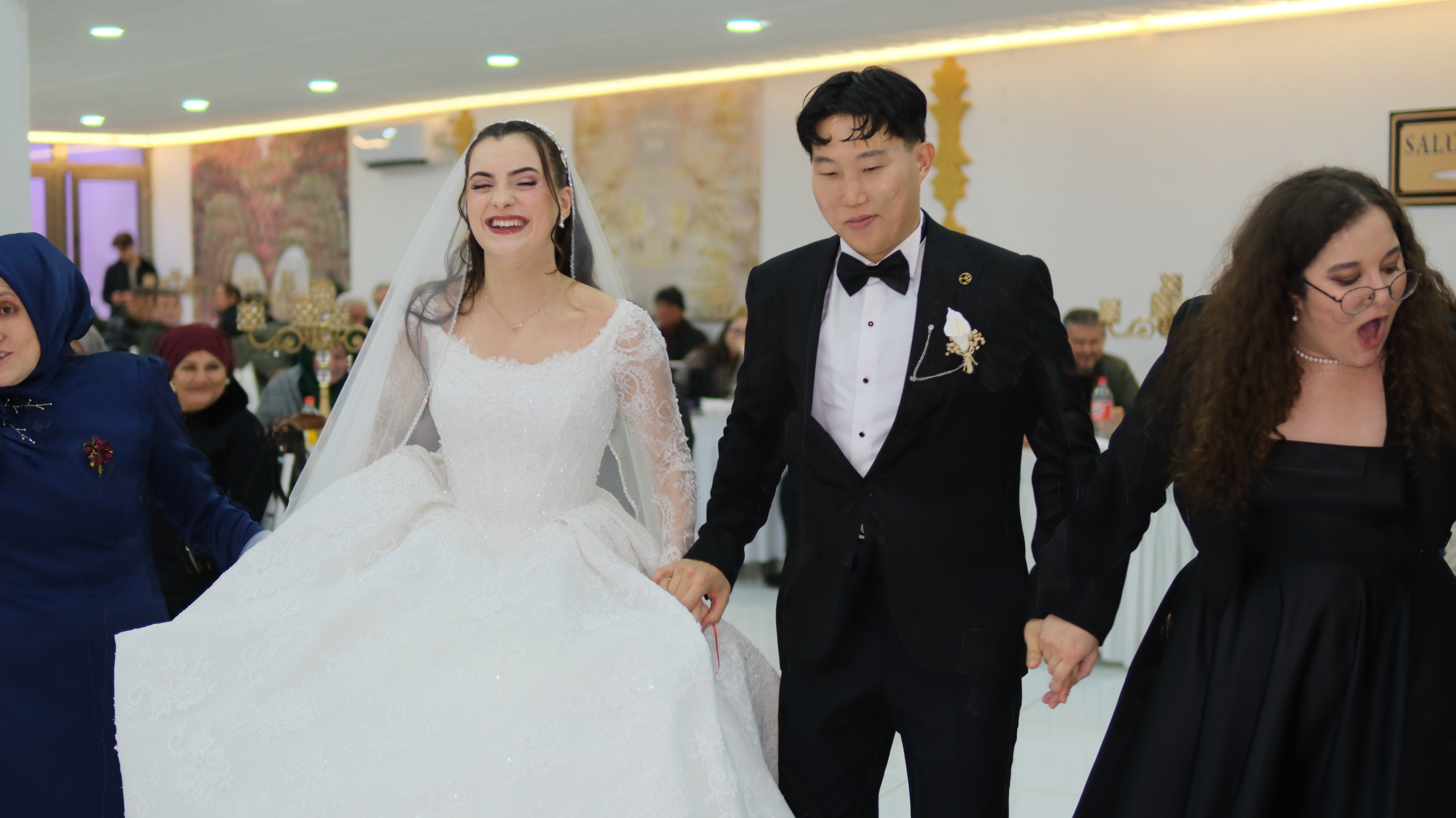 Kore’de düğün kültürü olmadığını ancak çok mutlu olduğunu söyleyen damat Kim, “Kore'de kesinlikle böyle bir şey yok, yani çok kısa süren bir düğün gelenekleri var. Bu yüzden şu anda çok heyecanlıyım ve çok eğlenceli bir kültür. Ülkeler, şehirler hiçbir şekilde önemli değil, yani. Ruh eşini bulunca bu iş oluyor” diye konuştu.