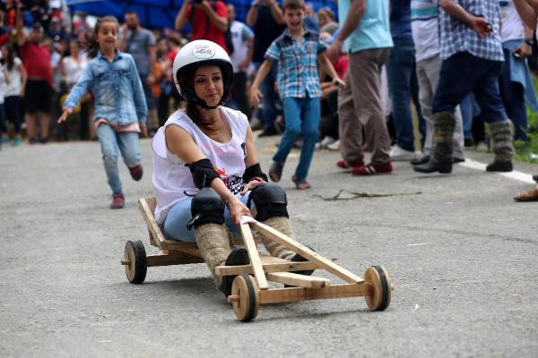 Hiçbir şekilde frenin, motorun ve demir parçanın kullanılmadığı araçlar, 1600 metreyi bir şekilde tamamlayarak bitiş çizgisine ulaşmaya çalıştı. Rampalarda 70 kilometre hıza kadar ulaşabilen araçlarda ayağa takılan sert lastikler fren işlevi gördü, katılımcılar kıyasıya yarıştı. Kadınların yarışı da büyük ilgi çekti. 1650 metrelik dik parkurda bazı yarışmacılar birbirleriyle çarpıştı, bazıları takla attı, bazılarının araçlarının da tekeri çıktı. Kazalarda 2 kişi hafif yaralandı. Yaralılara hazır bekletilen ambulansta müdahale edildi.