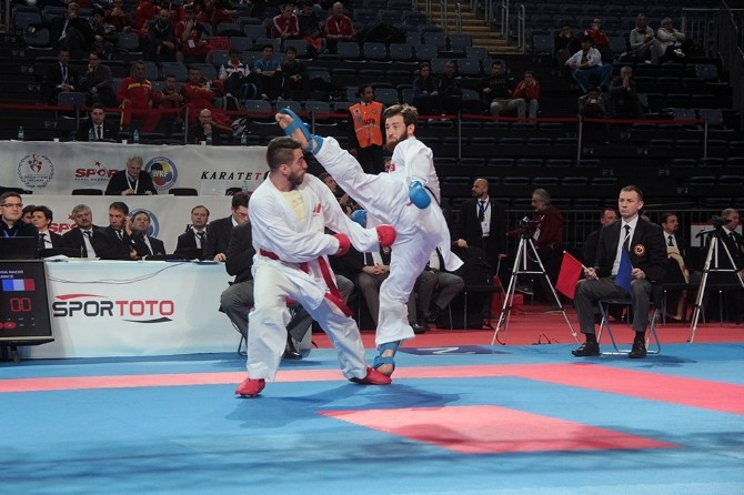 Sakarya Büyükşehir Belediyesi Sporcusu Enes Erkan, İstanbul’da düzenlenen 50. Avrupa Büyükler Karate Şampiyonası’nda güçlü rakiplerini yenerek finale yükseldi. Erkan, “Türkiye halkını temsil etmek, mücadelelere çıktığımda bana ayrı bir kuvvet verdi. İnşallah finalde Sırbistanlı rakibimi yenerek ülkeme ve şehrime bir altın madalya daha hediye edeceğim” dedi.
