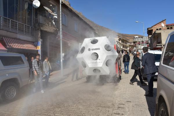 Emin BAL/ BEYTÜŞŞEBAP (Şırnak),(DHA)- ŞIRNAK'ın Beytüşşebap ilçesinde belediye tarafından yeni alınan dezenfekte cihazıyla cadde ve sokakları dezenfekte edildi.