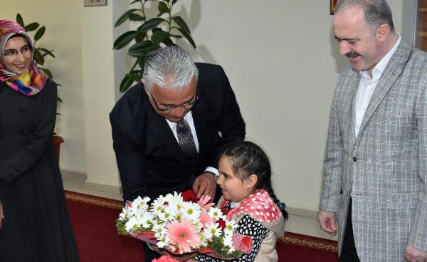 Arif KARAKAŞ/VAN,(DHA) -VAN'ın Tuşba ilçesindeki Kadın ve Çocuk Eğitim Merkezine giden minik öğrenciler,Türk Polis Teşkilatının 173'üncü kuruluş yıldönümü etkinlikleri kapsamında, Van Emniyet Müdürü Mehmet Suat Ekici'yi makamında ziyaret ederek, polis haftasını kutladı.